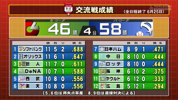 ■2019年 交流戦前後の順位表