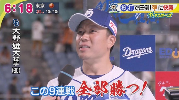 今年の大野は割と安定感あって素晴らしい。このまま頑張ってAクラス目指そう。