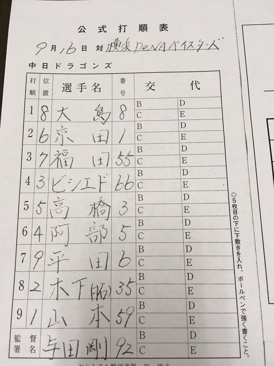 — 中日ドラゴンズ公式 (@DragonsOfficial) 2019年9月16日